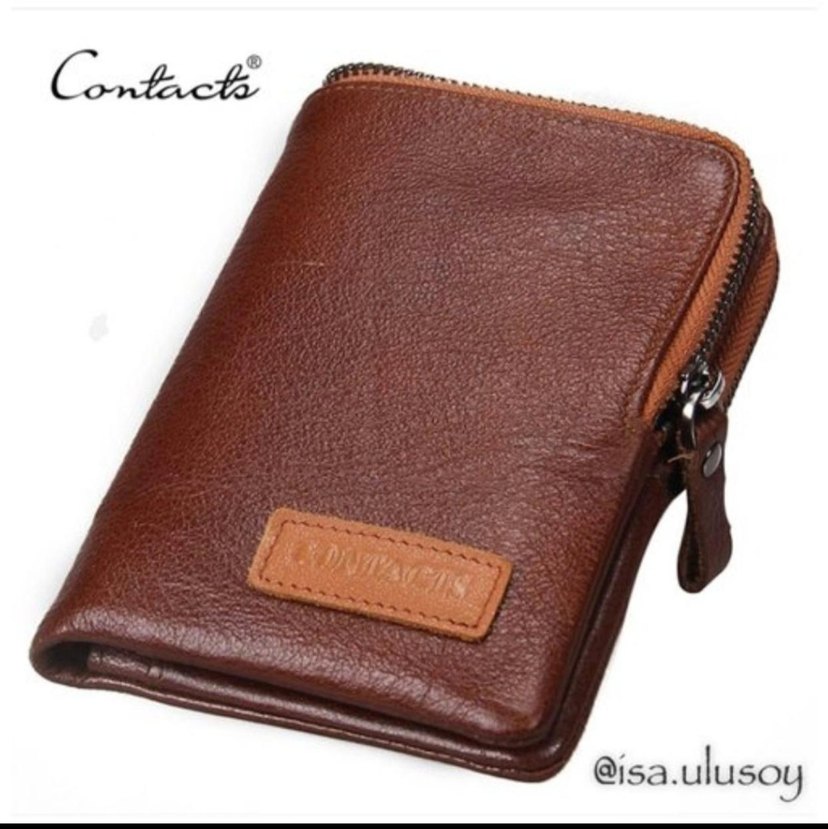 Parlak kahverengi erkek cüzdan, sade desenli ve fermuarlı. Minimalist biker tarzında, deri dokusuyla eski bir hava katıyor. Üzerinde contast etiketi bulunur.