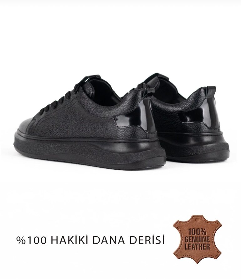 tüm ayakkabı numaraları mevcuttur 40’tan 44’e kadar%100 hakiki dana derisinden üretilmiş, siyah renkli, rahat tabanlı erkek spor ayakkabı. Minimalist ve sade tasarımıyla günlük kullanıma uygundur.