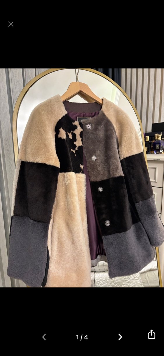 Kadın midi boy desenli kürk ceket, yumuşak ve sıcak dokuda. Gevşek kesim, uzun kollu ve yakası notched lapel tarzında, günlük kullanıma uygun.