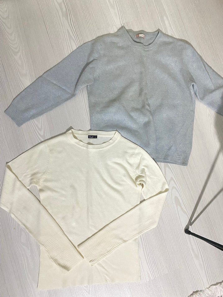 İkisini de xs bedenken kullandım. Boyum 160 kilom 48-50 arasındaydı. Alırken bunu göz önğne alınız lütfen beyazda hafif tüylenme var ama çok değil belli olmuyor fazla. Kullanmadığım için uyguna satıyorum zaten. Lütfen iade ile de uğraştırmayın rica ediyorum. Mavi olan kaşmir olan kazak bence hafif çekme var ama bedeni yazmıyor kolları çok uzun değildi bilekten bir iki cm yukarda bitiyor ama kullanımı çok güzel. Yumuşak.