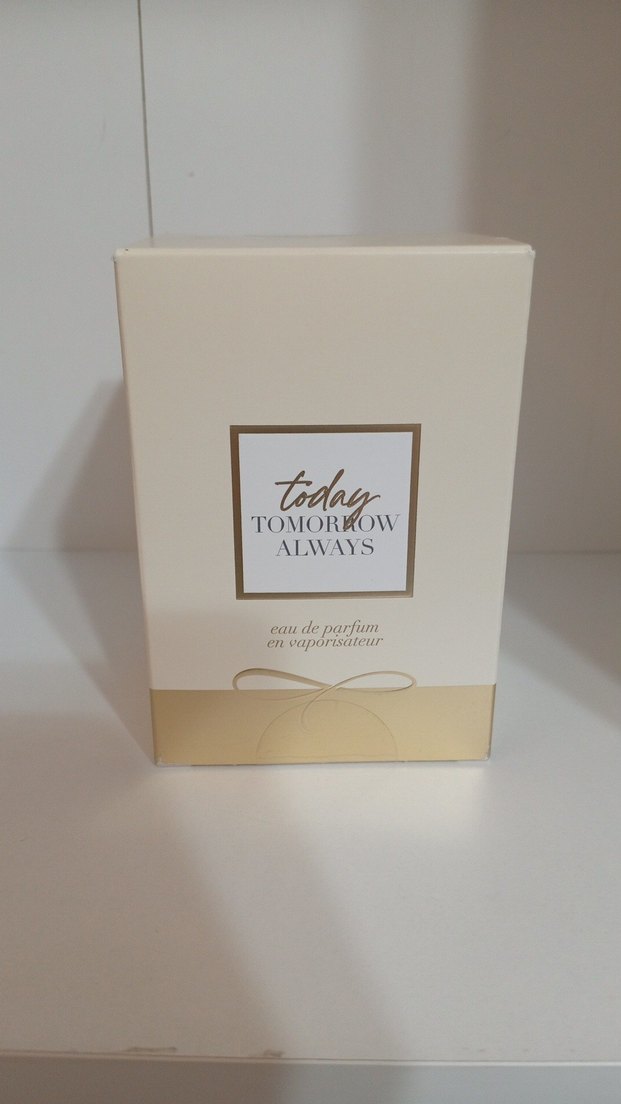 Today Tomorrow Always kadın parfümü, zarif ve kalıcı kokusuyla beyaz ve altın renkli sade kutuda sunulmaktadır. Eau de parfum çeşidindedir. 100 mldir