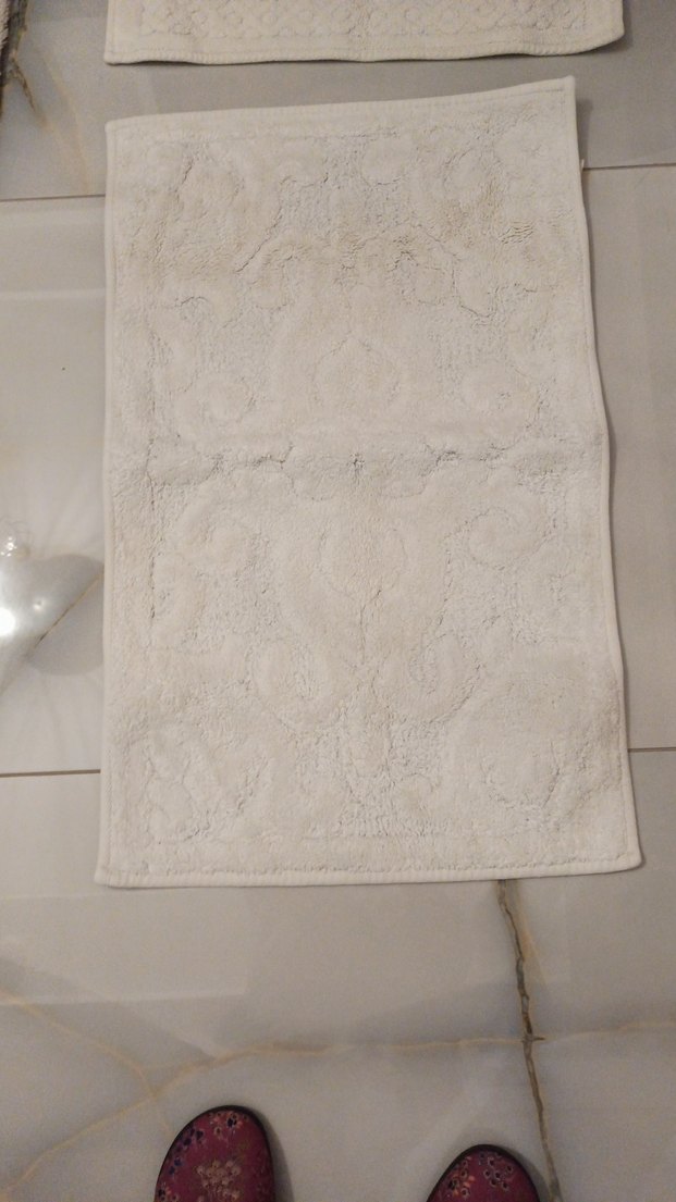 Yumuşak ve emici beyaz banyo paspası, hafif dokulu yüzeyiyle ıslak zeminlerde konfor ve güvenlik sağlar.