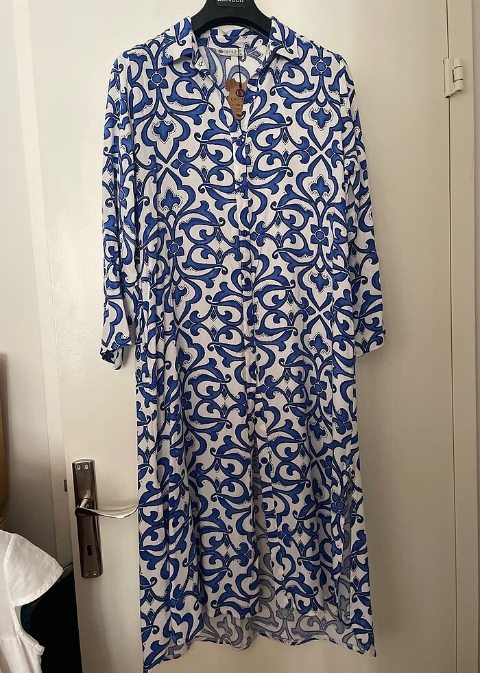 100% pamuk Ceylin marka maxi elbise orijinal Görseldeki gibidir. M beden. Ölçüleri: bel çevresi 112 cm omuz 40 cm kol 55 cm önden uzunluk 114 cm arkadan uzunluk 124 cm Cepli, yandan yırtmaçlı yırtmaç boyu yerden 32 cm