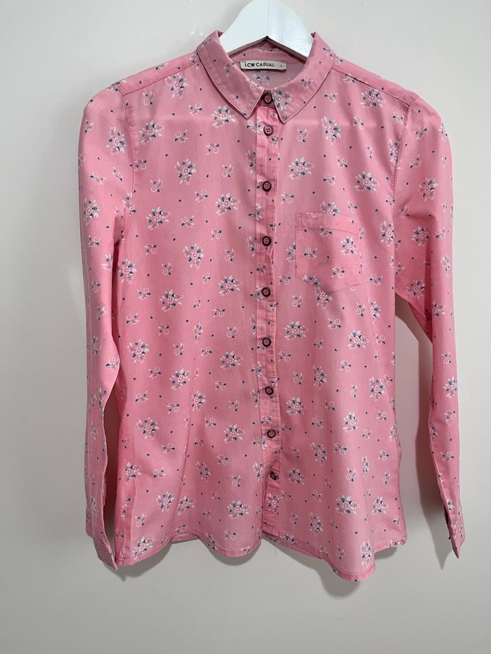 100% Pamuk pastel pembe rengi, az ve temiz kullanıldı, kusursuzdur. İki kol arası 47 cm, boyu yakasız 63,5 cm