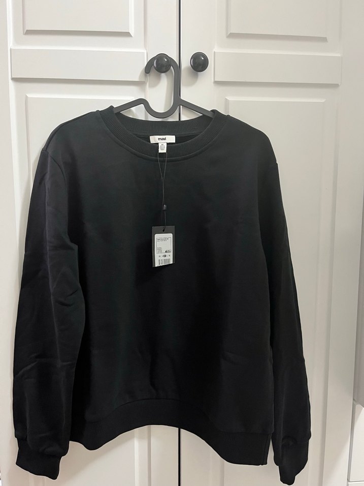 Siyah renkli, yuvarlak yakalı ve uzun kollu bu sweatshirt, rahat kesimi ve yumuşak, sıcak dokusuyla günlük sokak stiline uygundur.