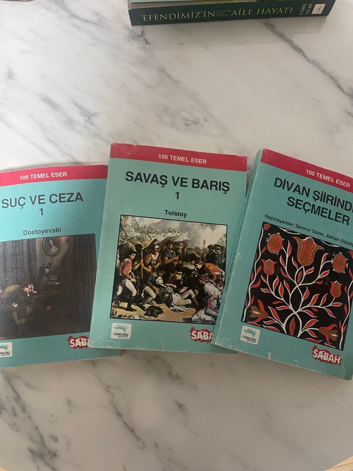 Tolstoy'dan Savaş ve Barış, Dostoyevski'den Suç ve Ceza ve Divan Şiiri Seçmeleri içeren 100 Temel Eser kitap seti.