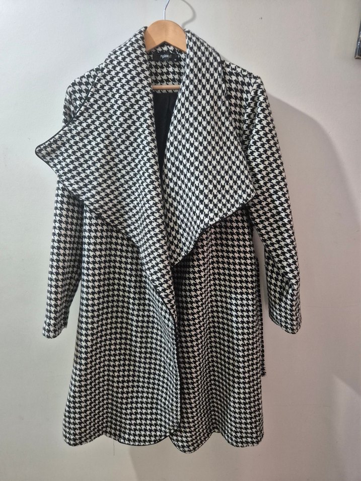Kadınlar için gri desenli, uzun kollu, regular fit ve dökümlü yakalı uzun kaban. Sentetik kumaştan üretilmiş, günlük şıklık için uygun. yün kaşe kumaştir pazarlık vardır 40 beden