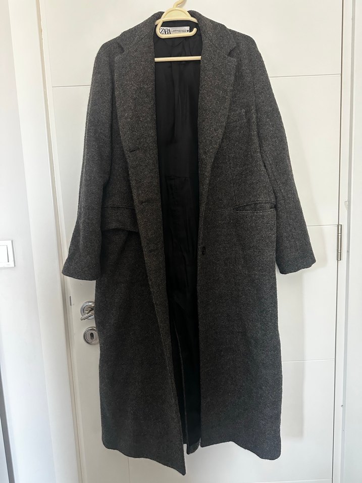 Önceki sezon 6000₺ ödedim. Neredeyse hiç giymedim. Bana omuzları düşük görünüyor. Aslında tam kalıp durması gerekiyor ama bende oversize değil büyükmüş gibi duruyor. Boyum 160. Uzun, dışı yüzde yüz yünlü. antrasit gri renkte, yumuşak dokulu klasik yakalı kaban. Yanlarda cepleri ve siyah astarı vardır.