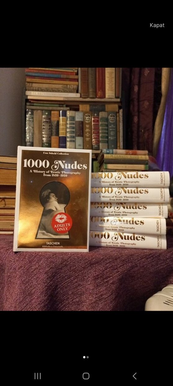 1000 Nudes kitap seti, 1539-1939 yılları arasında erotik fotoğrafçılığın tarihini detaylıca sunar, vintage görseller ve zengin içerik içerir. Taschen tarafından çıkarılan 1839 ile 1939 arası çekilmiş erotik fotoğrafların bulunduğu müthiş bir kitap. Yine 3 dilde hazırlanmış, İngilizce Fransızca ve Almanca olarak. Yazılı kısımlar çok az zaten. Fotoğrafçılık sanatı ile ilgili bulunmaz bir kaynak. Aslında harika fotoğraflar var ama maalesef sansürden geçmeyeceği için ekleyemiyorum. 573 sayfa. Ciltli ve şömizli, kuşe kağıda baskı. Boyutları 14x19.5cm Merak ettiklerinizi sorabilirsiniz. Ayrıntılı fotoğraflarını mesaj ile gönderebilirim.