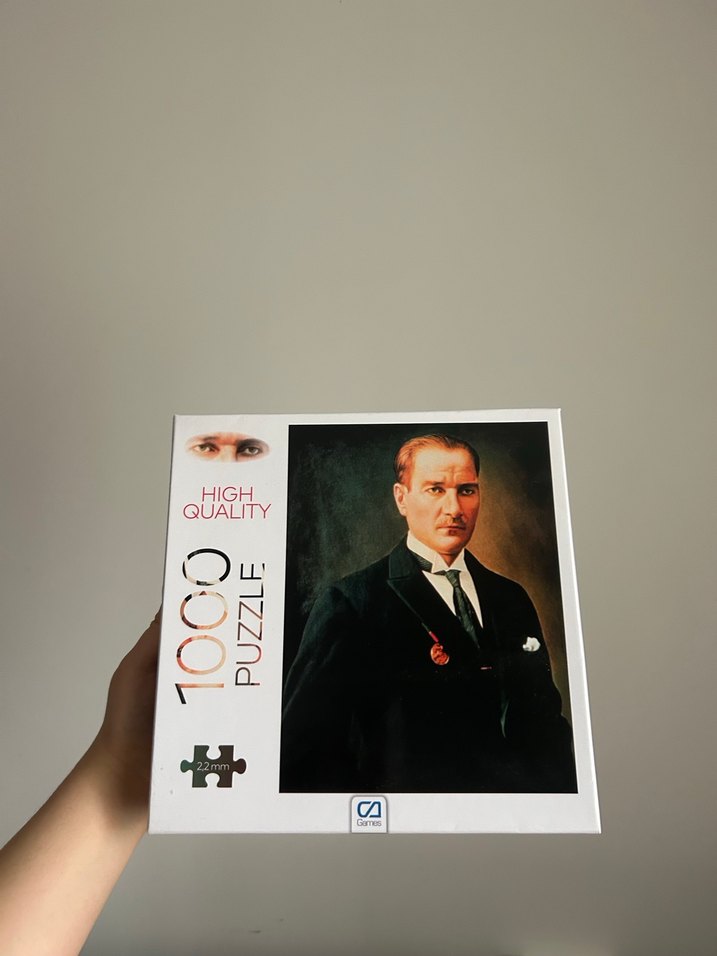 Atatürk portresi içeren 1000 parçalık puzzle, koyu tonlarda ve yüksek kaliteli baskıyla sunulmuştur. Eksik parçası bulunmamaktadır