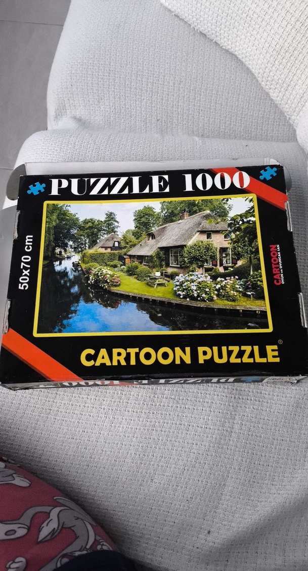 50x70 cm boyutlarında, nehir kenarındaki evleri gösteren 1000 parçalı Cartoon Puzzle,SORMADAN ÜRÜN BİRLEŞTİRME YAPMAYIN