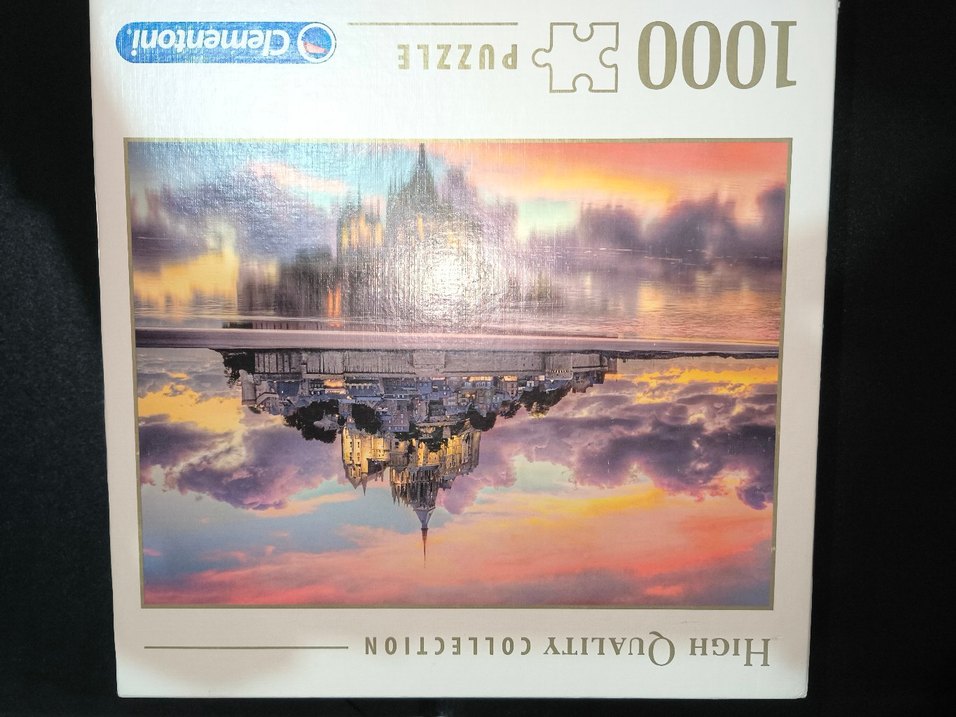 Parlak, çok renkli 1000 parçalık şehir manzaralı puzzle, canlı gün batımı renkleriyle.