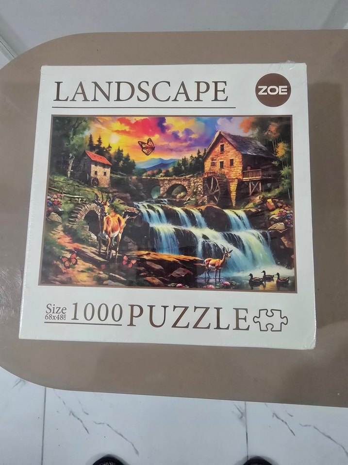 1000 parçadan oluşan bu puzzle, şelale, hayvanlar ve rustik evlerle dolu canlı bir manzara sunar.
