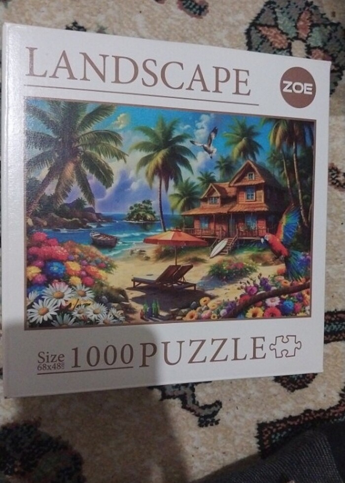 Palmiye evi manzaralı 68×48 cm 1000 parça zoe markalı puzzle oyuncakcidan 5 tane almıştık 2 tanesini açtık actiklarimizdan diğeri de bu hiç bir parçası eksik değildir çocuklarından vaktim olmadığı için yapamadım