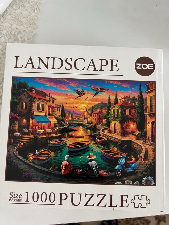 1000 parçadan oluşan bu puzzle, tekne ve binaların olduğu canlı renkli bir manzara sahnesi sunar. Koyu tonlar detayları ön plana çıkarır. Eksizdir, 1 kez yapıldı.