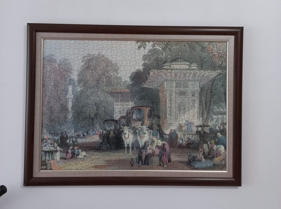 1000 parçalık tamamlanmış,özel çerçeveli puzzle 77×56