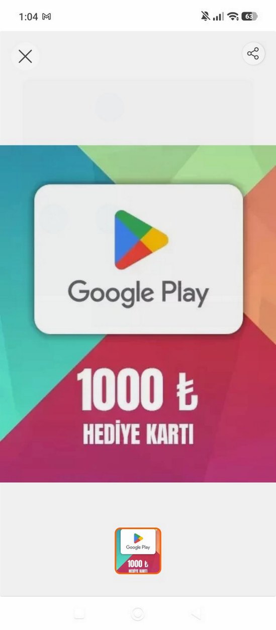 1000 TL Google Play Hediye Kartı
