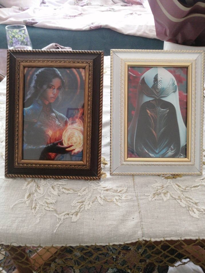 Yanlarında açıklar var Portre veya sanat eserleri için detaylı kenarlıklı koyu ve beyaz renkli dekoratif fotoğraf çerçeveleri.