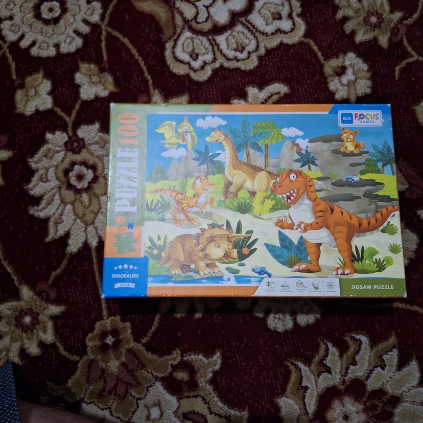 103 parçadan oluşan bu renkli dinozor yapbozu, çeşitli dinozor çizimleri içerir ve çocuklar için eğlenceli bir etkinlik sunar. Bir parçası eksiktir.