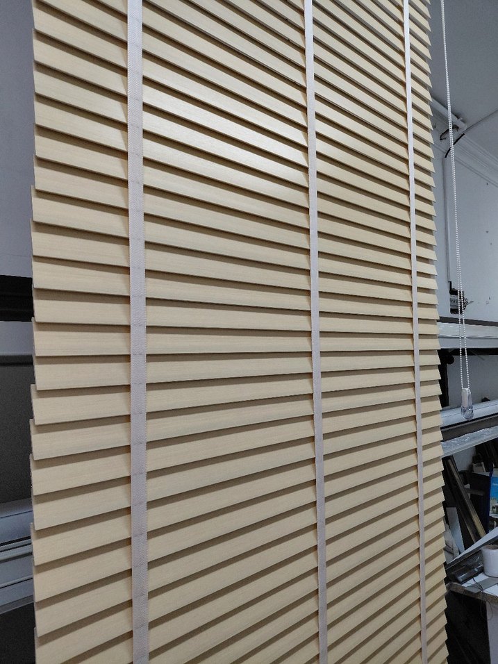 103 x 200 cm ebatlarında 50 mm kurdeleli pvc jaluzi . acık ahşap rengi