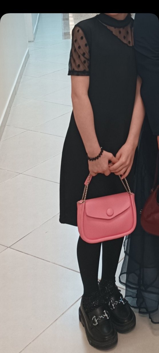 11 12 yaş siyah puantiyeli tüllü omuz detaylı elbise