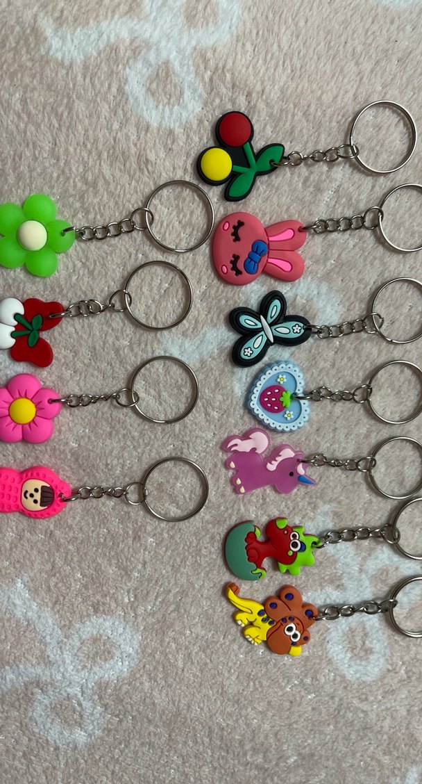 Çiçek, hayvan ve kalp gibi eğlenceli desenlere sahip renkli boncuklu anahtarlıklar, bohem ve minimalist tarz için uygun.