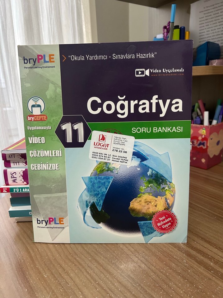 11. sınıf için bryPLE markalı coğrafya soru bankasıdır. Video çözümleri cep telefonuyla kullanılabilir, sınavlara hazırlık için uygundur.