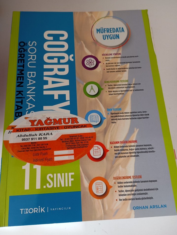 11. sınıf coğrafya öğretmen kitabı, müfredata uygun konu özetleri, testler ve değerlendirme testleri içerir.