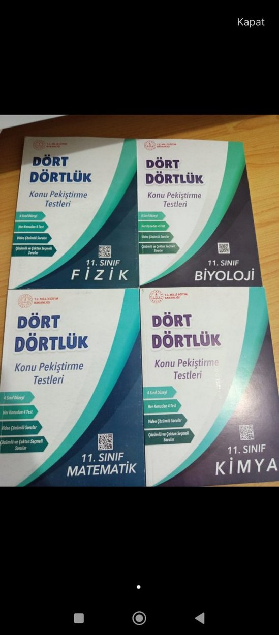 11. sınıf Fizik, Biyoloji, Matematik ve Kimya konu pekiştirme testlerini içeren dört kitaplık set. Çözümlü ve çoktan seçmeli sorular bulunur.