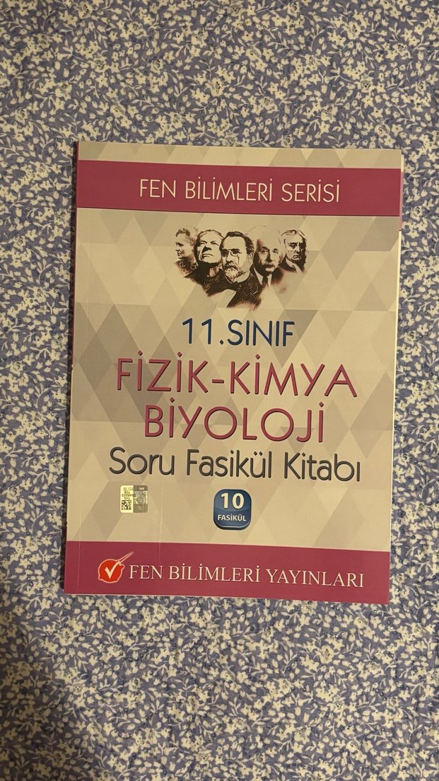 Fen Bilimleri Yayınları'ndan 11. sınıf fizik, kimya ve biyoloji konularını içeren 10 fasiküllük soru kitabı.Hiç kullanılmamıştır