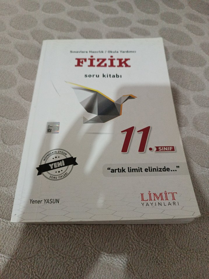 Limit Yayınları'ndan 11. sınıf fizik soru kitabı. Yener Yasun tarafından hazırlanmış, sınavlara yönelik güncel sorular içeriyor. 272 sayfa 37.sayfaya kadar çözülmüştür 2018 basım yılıdır