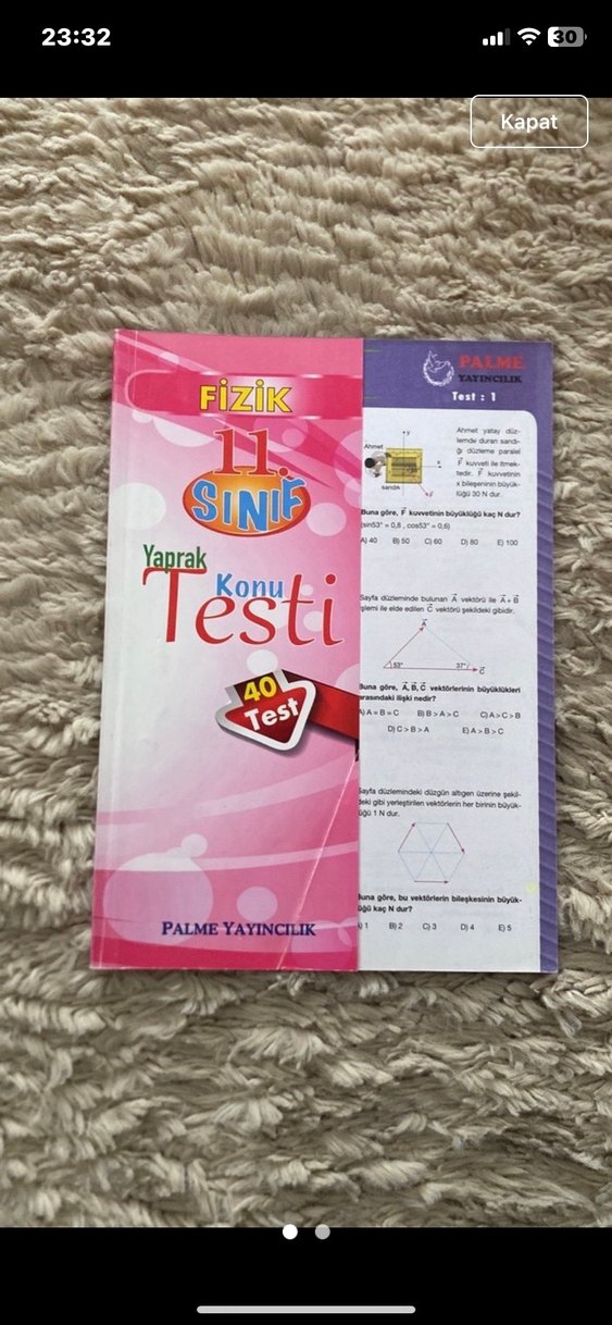 Palme Yayıncılık tarafından hazırlanmış, 11. sınıf fizik konuları için 40 yaprak test içerir.