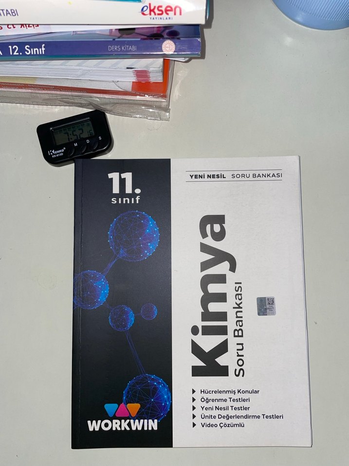 Workwin 11. sınıf kimya soru bankası, hücrelenmiş konular, öğrenme testleri, yeni nesil sorular, ünite değerlendirme testleri ve video çözümleri içerir.