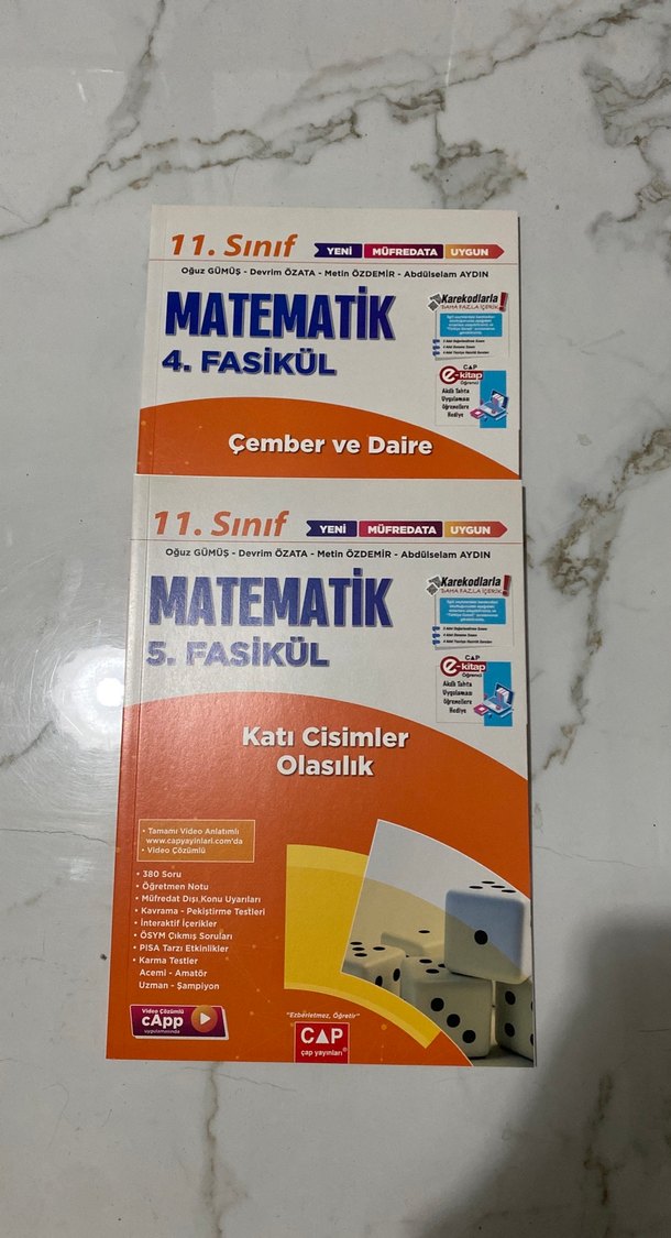 11. sınıf matematik 4. ve 5. fasikülleri, çember, daire, katı cisimler ve olasılık konularını içerir. 380 soru, video çözümleri ve sınav tüyoları bulunur.