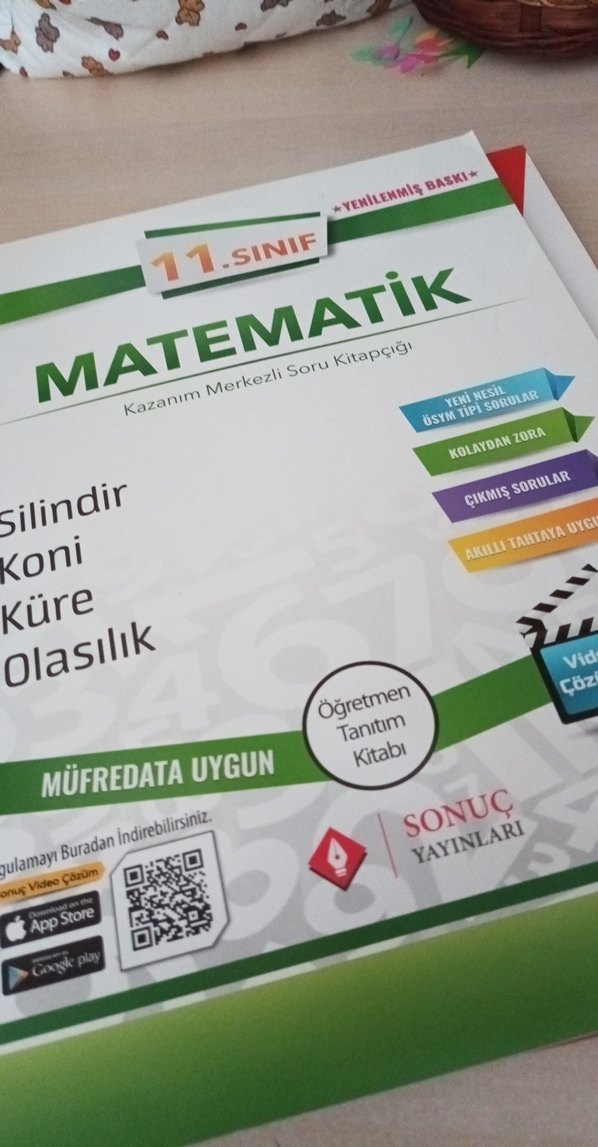 11. sınıf matematik kitabı silindir, koni, küre ve olasılık konularını içerir. Öğretmen tanıtım kitabı, çıkmış sorular ve müfredata uygundur. Video çözümleri QR kod ile erişilebilir. Öğrenci kardeşlerime bi tık indirim yapabilirim paraya ihtiyacım olduğu için satıyorum