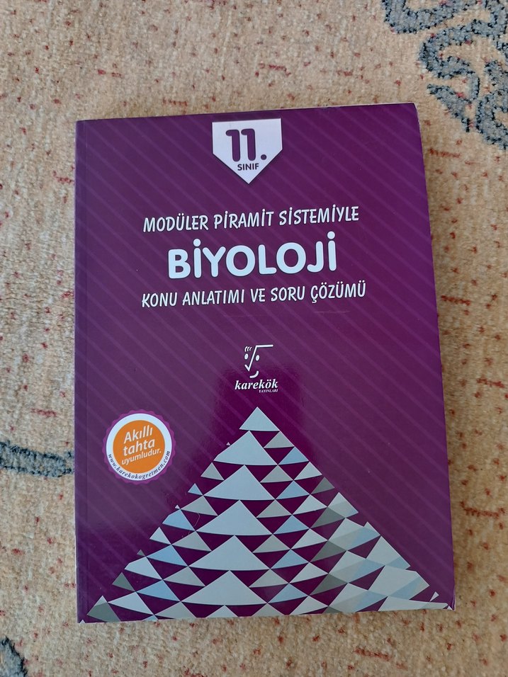 11. sınıf biyoloji kitabı, modüler piramit sistemiyle konu anlatımı ve soru çözümü içerir. Akıllı tahta desteklidir, Karekök yayınları. hiç çözülmedi
