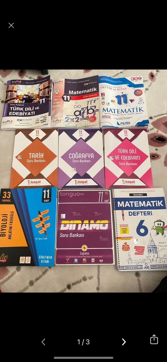 11. sınıf Matematik, Türk Dili ve Edebiyatı, Coğrafya ve Tarih konularını kapsayan soru bankası ve defter seti. Hiçbirisi çözülmemiş