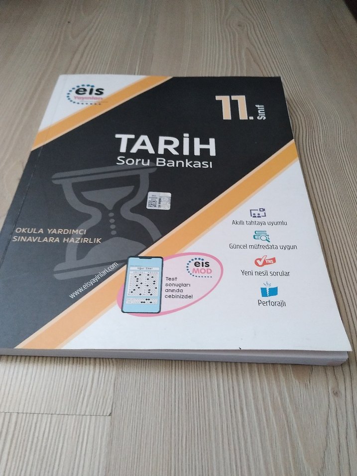 11. sınıf için hazırlanmış EIS Tarih Soru Bankası cay döküldügu ıcın fotoğraftaki gıbı bır kusuru var ıc sayfalarda cok sıkıntı yok sayfa aralarını da cektım anlaşılır zaten