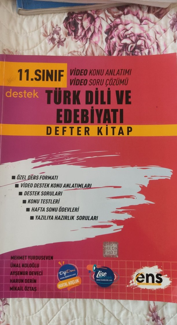 11. sınıf Türk Dili ve Edebiyatı defter kitap; video destek konu anlatımları, soru çözümleri, konu testleri, hafta sonu ödevleri ve yazılıya hazırlık soruları içerir.