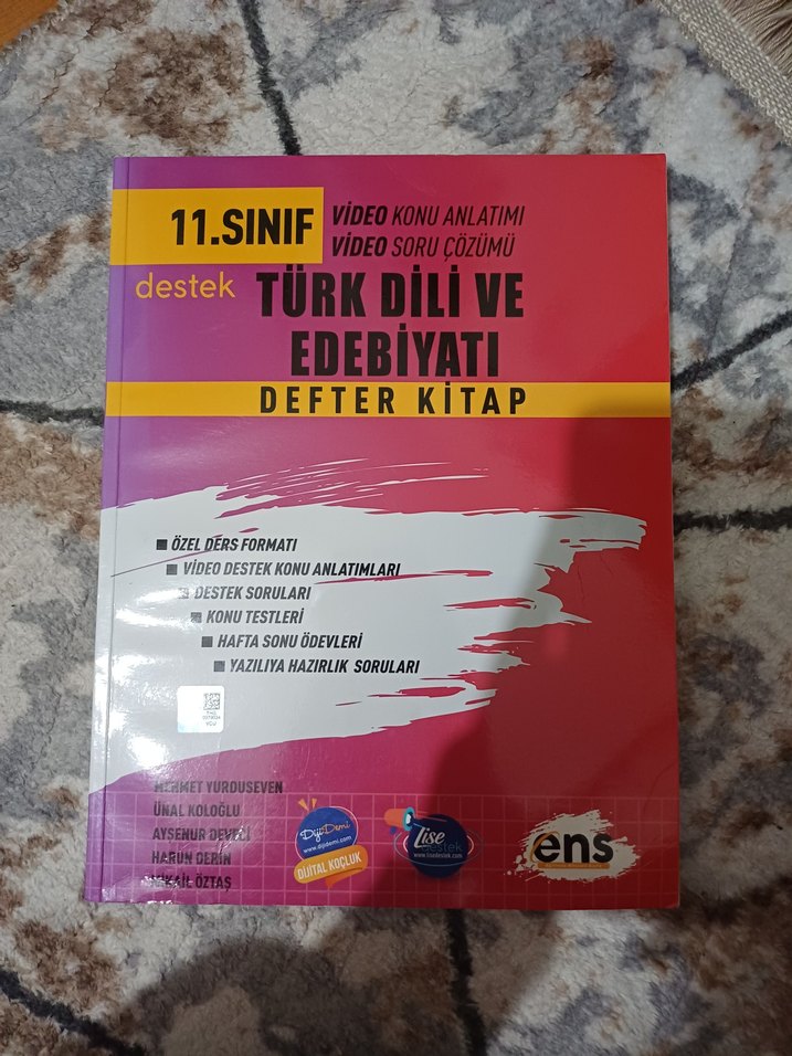 11. sınıf Türk Dili ve Edebiyatı defter kitap, video konu anlatımı, soru çözümü, destek soruları, hafta sonu ödevleri ve yazılıya hazırlık soruları içerir. hiç kullanılmamış sadece ilk sayfa kısmına ders ile ilgili ufak notlar alınmıştır konu anlatım kısmına diğer türlü tertemiz hiç bit sıkıntısı yok. tekliflere açığım.