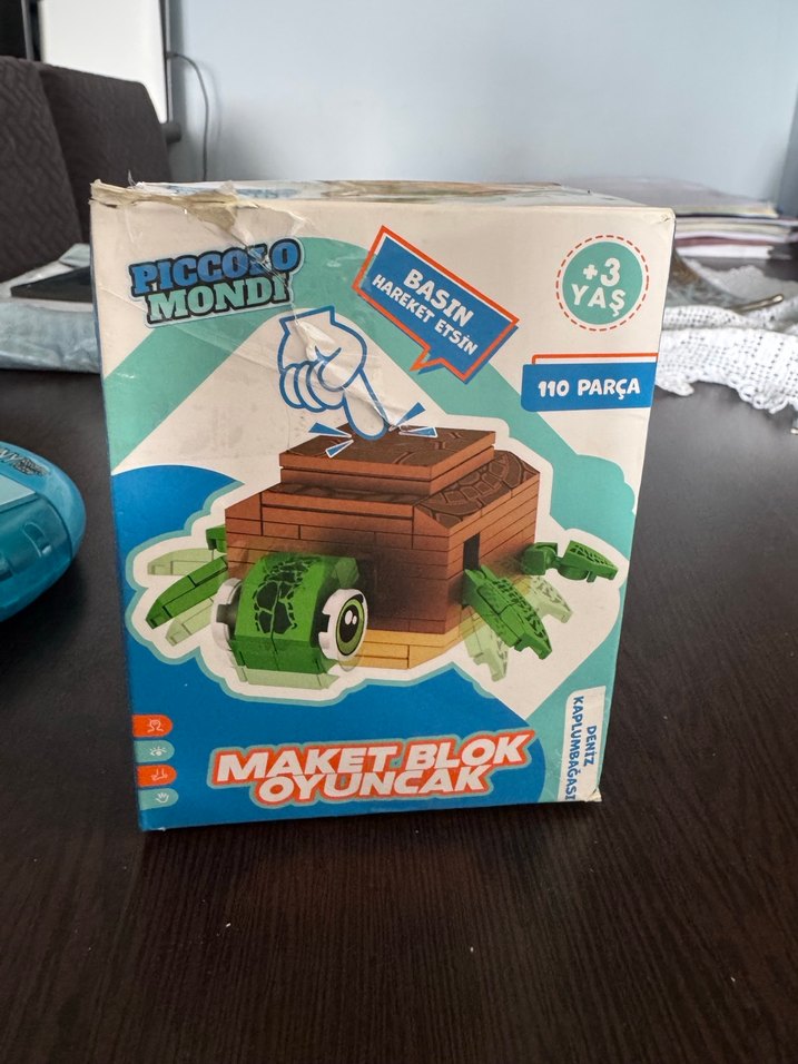 110 parçadan oluşan kahverengi kaplumbağa maket blok seti, hareketli parçalar içerir. 3 yaş ve üzeri çocuklar için uygundur.