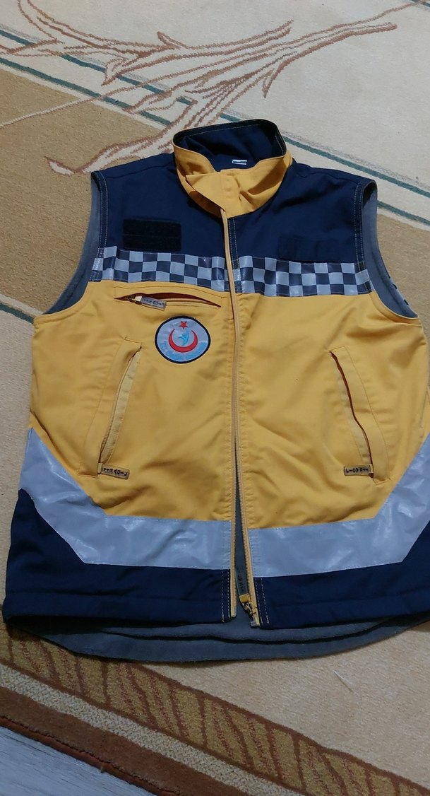 Sarı, fermuarlı, yakalı, kolsuz yelek. Günlük sokak stiline uygun, fitted kesim ve reflektör detayları içerir. kışlık içi polarlı m beden de olur