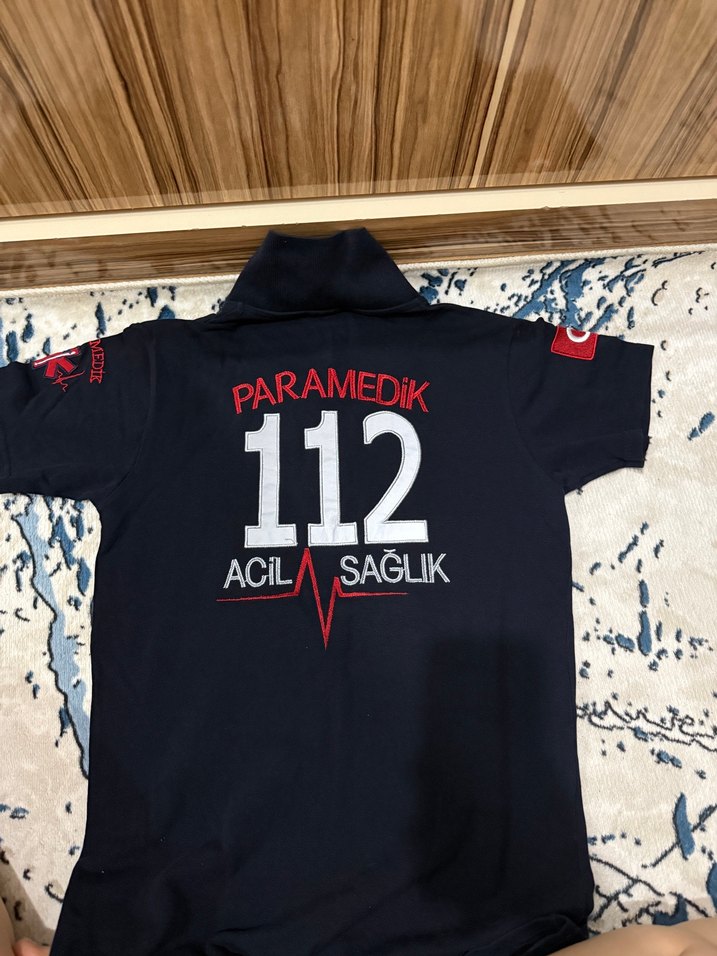 Kadın siyah polo tişört, kısa kollu ve acil paramedik baskılıdır. Sayılı kullanıldı fotoğraflarda inceleyebilirsiniz 52-54 kilo arası giydim .markası iba medikaldir