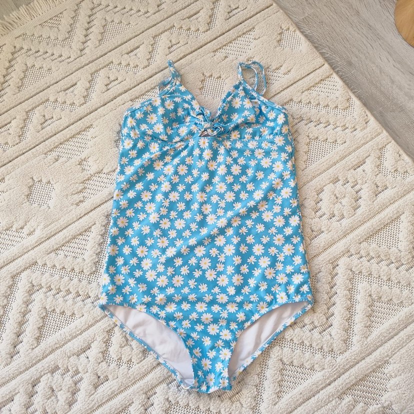 12-13 yaş Mavi Bohem Çiçek Desenli Askılı Mayo