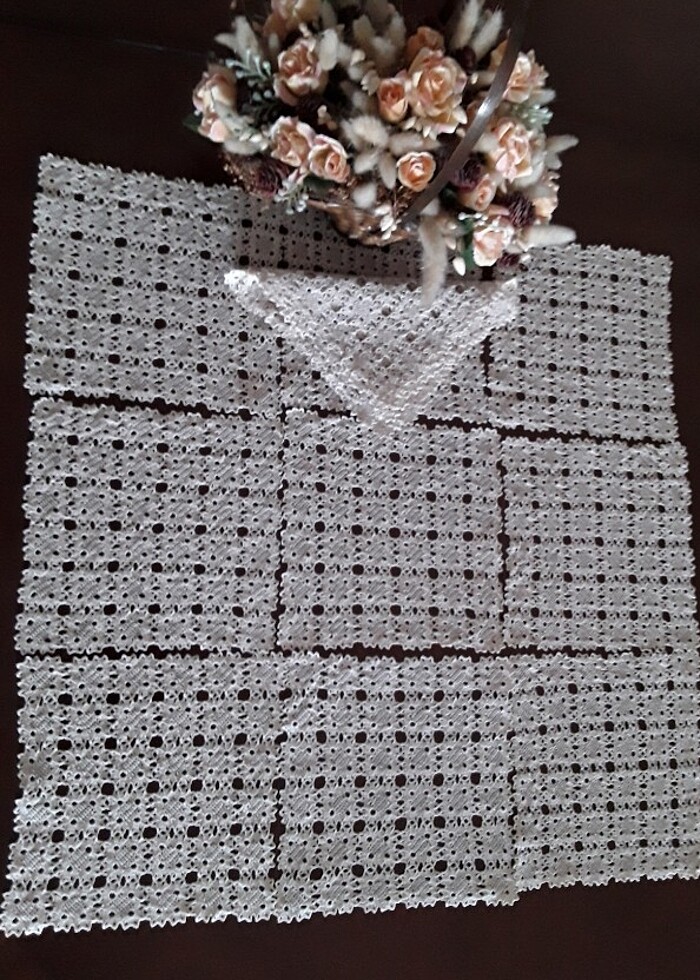 12 adet dantel örtü, 22x22cm ölçülerinde