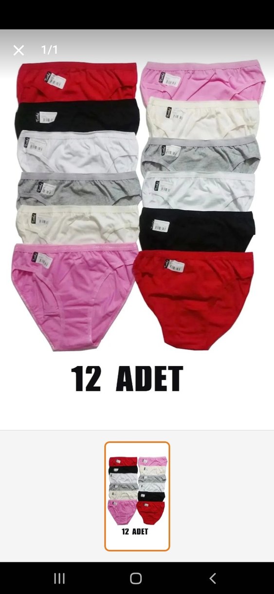 Kadın bikini kilot karışık renk 12 adet pamuklu kumaştan üretilmiş . Günlük kullanıma uygundur.