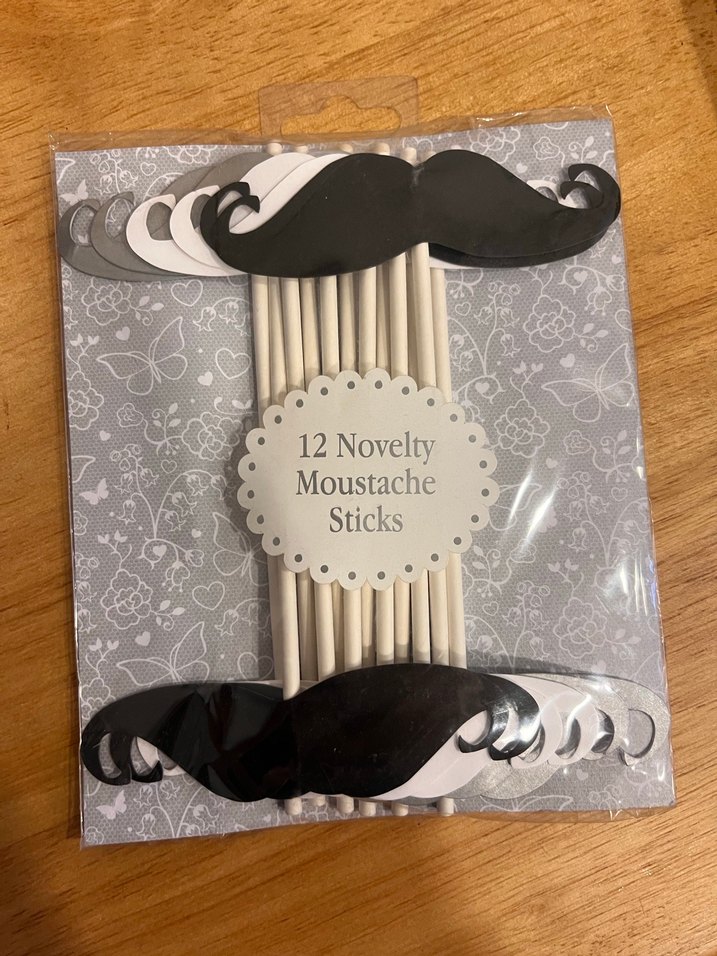 12 adet gri renkli bıyık şeklinde parti çubuğu, beyaz saplı. Fotoğraf ve kutlamalar için eğlenceli aksesuar.
