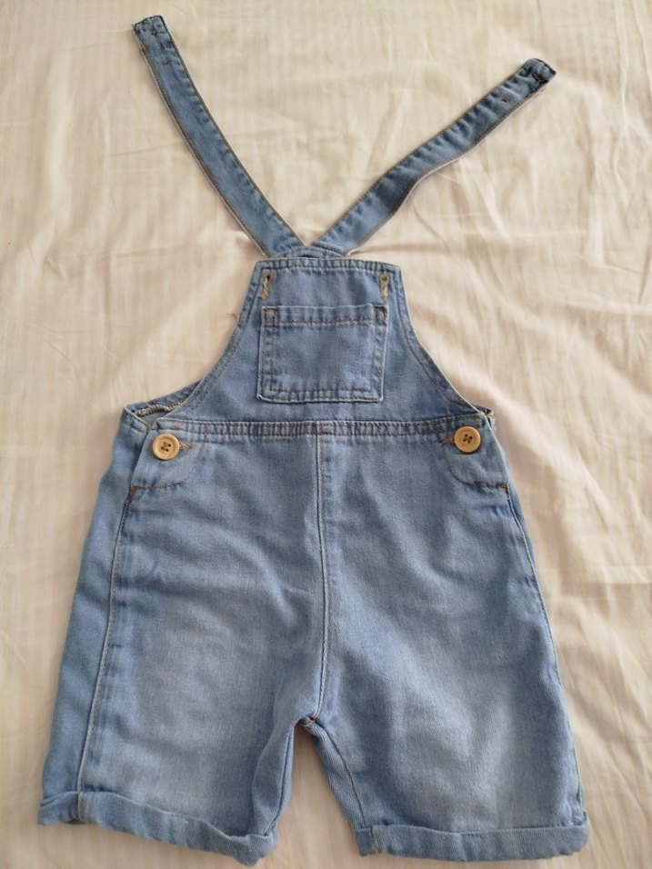 Unisex bol kesim, mavi kot salopet. Askıları tokalı ve ön cep detaylı, pastel tonlarda rahat bir sokak stili ürünü.