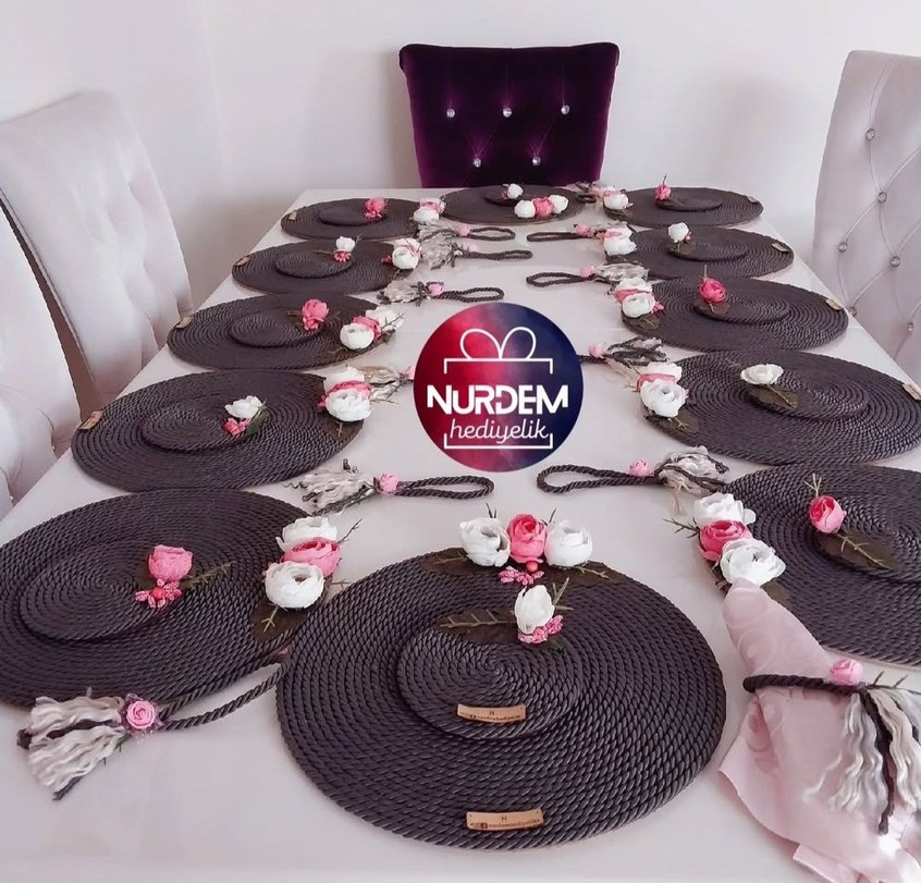 12 kişilik Füme renkli yuvarlak supla takımı. Gri supla üzerinde çiçek detaylarıyla düzenlenmiştir. İstenilen renklerde hazırlanır. 30 cm ölçüsünde ahşap üzerine hazırlanır. 12 supla + 12 bardak altlığı setidir. 12 adet peçete yüzükleri ise hediyedir.