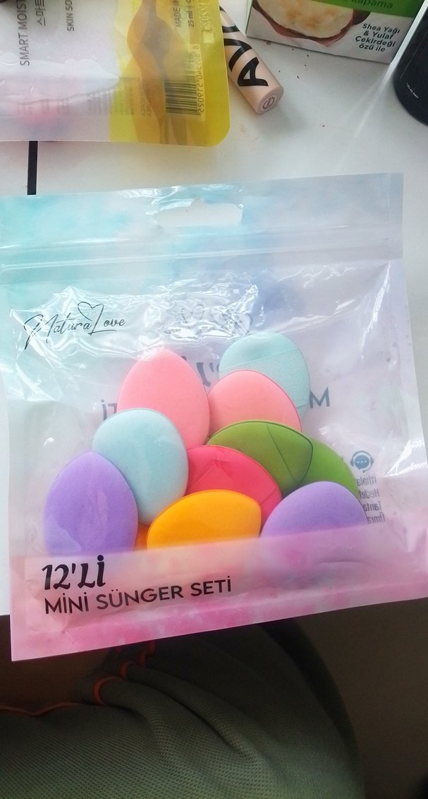 12'li pastel renklerde mini makyaj süngerleri seti. Yumuşak dokusu ile pürüzsüz uygulama sağlar.
